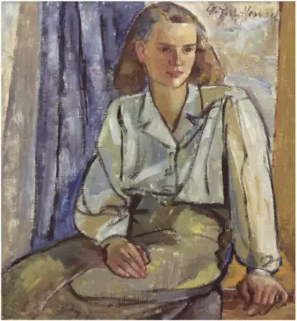 Лот 117 | Hensel, Gerhard Fritz (1910 Neukirch/Lausitz- 1986 Flensburg) "Sitzende junge Frau", Öl/Lw., signiert o.r., rücks. auf Keilrahmen Künstleradresse, 73,5x63,5 cm, Rahmen