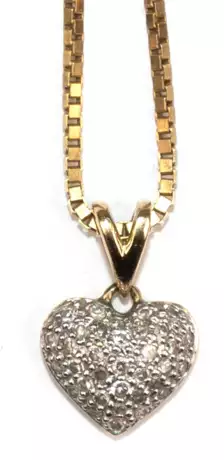 Лот 921 | Herz-Anhänger, 585er GG/WG, mit Brillantbesetzt, L. (mit Öse) 1,3 cm, dazu venezianische Kette, 333er GG, L. 49 cm