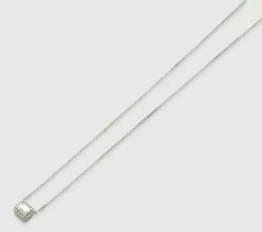Weißgold, gest. 750. Schauseitig besetzt mit einem Diamanten von ca. 0,40 ct. (F/vs2) im Radiantschliff und Brillanten von zus. ca. 0,15 ct. (F/vvs), an feiner Ankerkette. L. ca. 45 cm. Ges.-Gew. ca. 3,05 g.