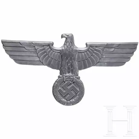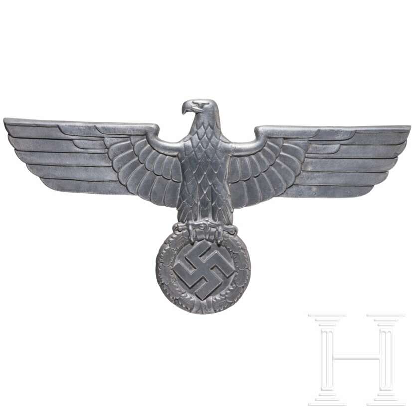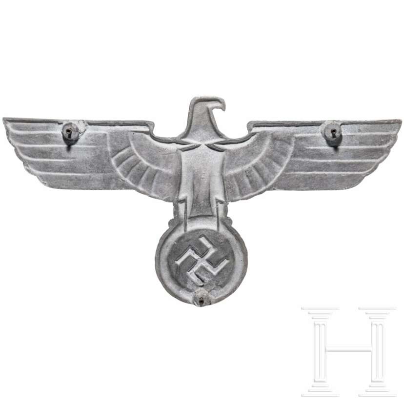 Reliefierter Hoheitsadler aus Leichtmetall, rs. bez. "Al-Mg-Si" und "RZA 10 BLN", drei Gewindelöcher zur Befestigung. Flügelspannweite ca. 60,5 cm.