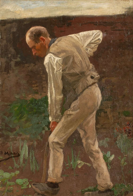 The Gardener, oil on firm cardboard, 48 x 33 cm cardboard dimensions, signed, partially rubbed, in need of cleaning