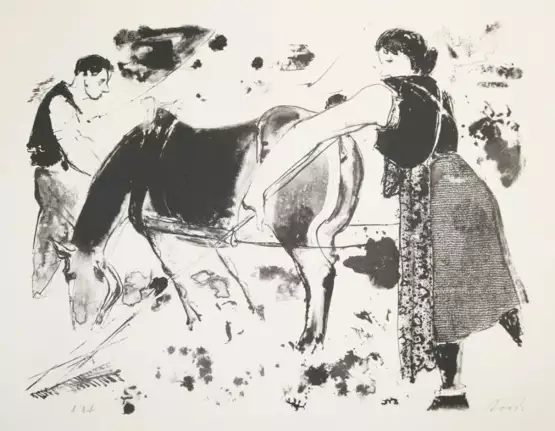 Dabei: Jordi,E. Arbeiter. Bauern. Bern, Promachos-Presse o.J. Qu.Imp.Fol. Mit sign. 18 Orig.-Lithogr. von Eugen Jordi. 1 Bl. Olwd. - Nr. 8 von 84 Ex..