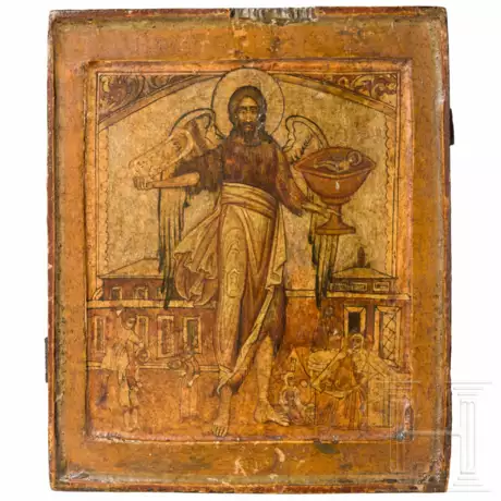 Лот 7631 | Ikone mit Johannes dem Vorläufer, Russland, um 1700 (großflächige Übermalungen)