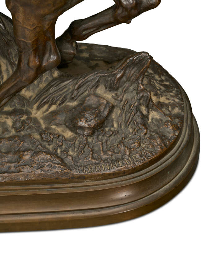 Inscribed 'I BONHEUR' (to right side of base) and stamped 'PEYROL EDITEUR' (to reverse of base)
