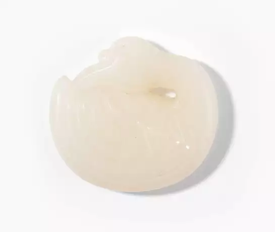 China, 20.Jh. Weisse Jade. Kranich, mit nach hintem gelegtem Kopf. L 5,3 cm.