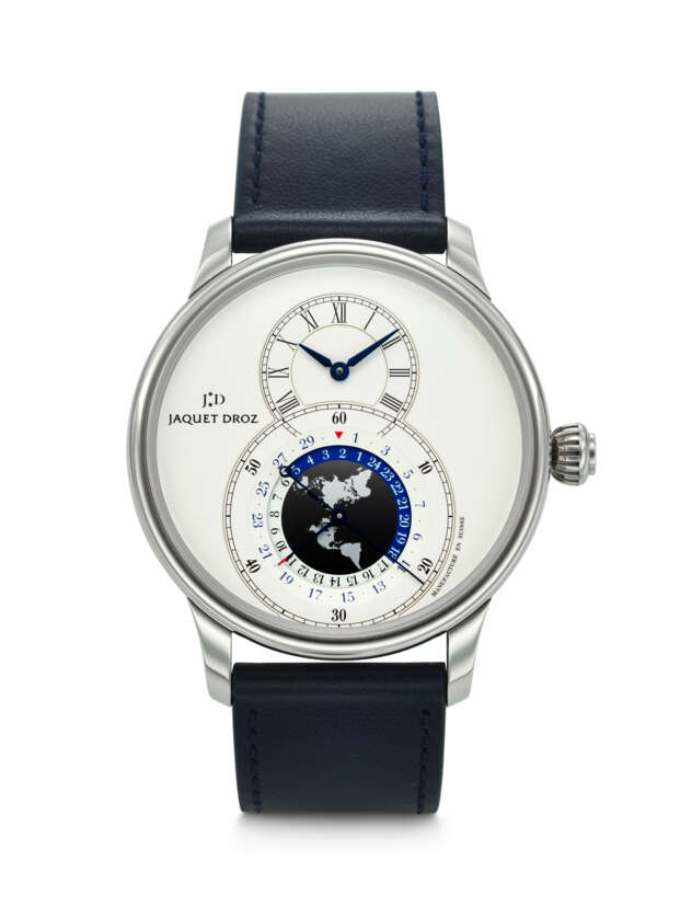 Лот 293 | JAQUET DROZ, STAINLESS STEEL DUAL TIME 'GRANDE SECONDE' WITH DATE, REF. J016030241