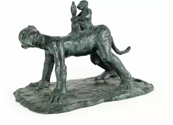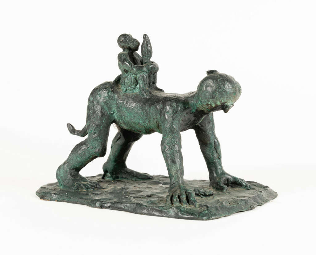 Bronze with green-black patina. (2002). Approx. 21 x 20 x 31 cm. One of 9 numbered copies. Signed on the plinth and with the foundry stamp "SCHMÄKE DÜSSELDORF".