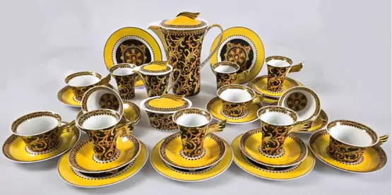 Лот 431 | Kaffee- und Teeservice, Rosenthal Versage, Barocco, 31-teilig, bestehend aus Kanne mit H. 24, 5 cm, Sahnekännchen und Zuckerdose, Form Ikarus- Paul Wunderlich, 6 Kaffeetassen mit 4 UT, 6 Teetassen (kl. Riß und Chip am R…