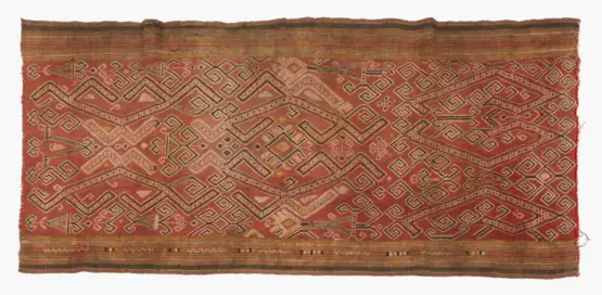 Borneo, 1.Hälfte 20.Jh. Baumwolle in Rot-, Beige- und Gelbtönen. Sungkit-Webtechnik. Rock. 112x46,5 cm.
