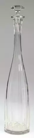 Лот 677 | Karaffe, Klarglas, achtkantiger schlanker Korpus mit Facettenschliff Facettenschliff, Stopfen mit eingestochener Luftblase, Ges.-H. 40,5 cm