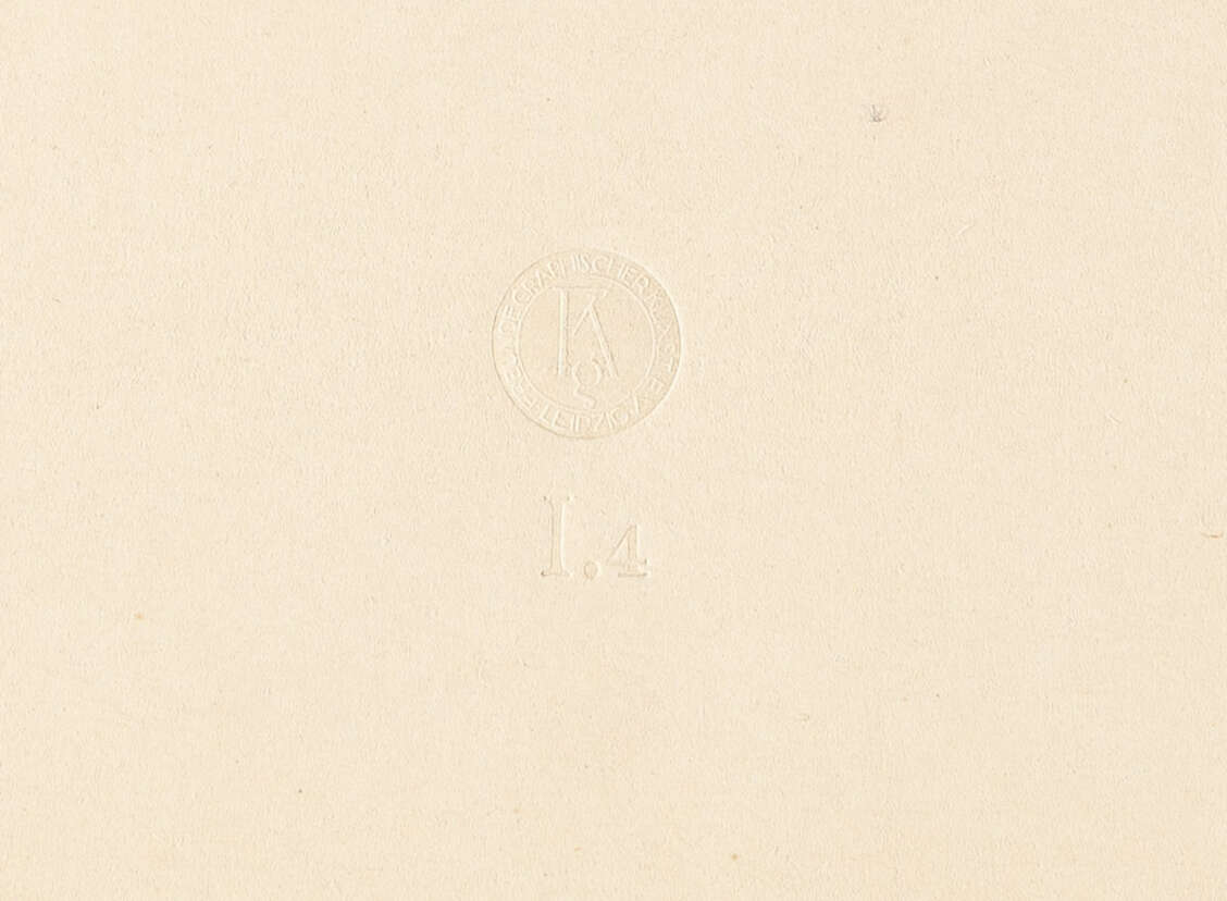Diese Auflage erscheint 1913 als I. Jahresgabe der „Freunde graphischer Kunst e.V.“, Leipzig, mit dem Trockenstempel auf dem O.-Passepartout.