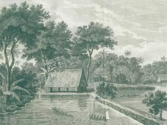 Vgl. Henze 5, 515. Cox II., 303. - Französische Ausgabe des Berichts von George Keate, basierend auf den Tagebüchern Capt. Wilsons, welcher 1783 mit der Antelope bei den Pelew-Inseln Schiffbruch erlitten hatte. Die Besatzung wurde von den Eingeborenen freundlich aufgenommen und als es ersteren schließlich gelang, mit einem aus den Überbleibseln der Antelope gebauten Boot nach Macau und von dort aus zurück nach England zu reisen, wurden sie von einem der Söhne des Königs der Eingeborenen, genannt Prinz Lee Boo, begleitet. - Taf. tls. etw. knittrig, wenige mit kl. Einrisse, vereinzelt schwach fleckig. Insgesamt guter Zustand.