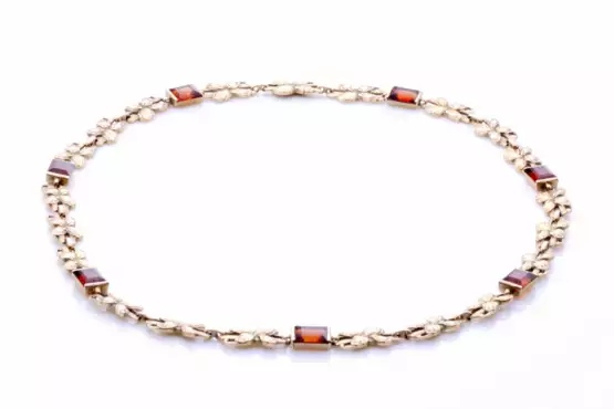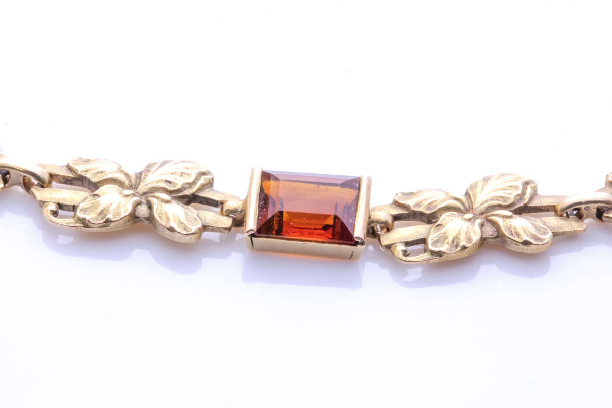 585 yellow gold, hallmarked, 21 elements with floral decoration and 7 rectangular faceted Madeira citrines, necklace length 42.5 cm, weight approx. 32.5 g