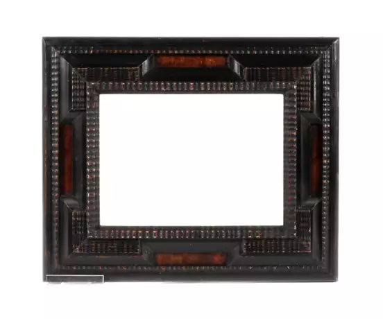 Italien, 20. Jh., im Renaissancestil gestalteter Rahmen mit schwarzen Profilleisten und eingesetztem Wurzelholzfurnier, guter Zustand, Falzmaße 25 x 19 cm.