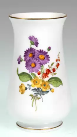 Лот 422 | Kleine Meißen-Vase, Bunte Blume 3 mit Goldrändern, 1. Wahl, H. 11 cm