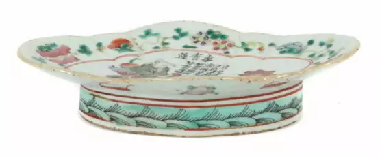 Лот 2416 | Kleine ovale Fußschale China, 20. Jh., Porzellan, polychrome Unter- un…