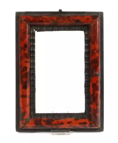 19. Jh., ca. 4 cm breite Leiste, schildpattfarben lackiert, Flammleiste als Inlay, Altersspuren, Falzmaß 18,5 x 11,5 cm.