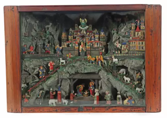 Лот 1686 | Klosterarbeit Weihnachtskrippe Süddeutschland, 19./20. Jh., Figuren üb…