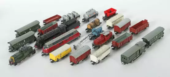 Лот 105 | Konvolut Eisenbahn Märklin u.a., Spur H0, 2 x Diesellok, ungedeuteter …