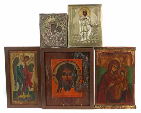 Лот 1679 | Konvolut Ikonen Südosteuropa, 19. Jh., 5 tlg., variierende Darstellung…