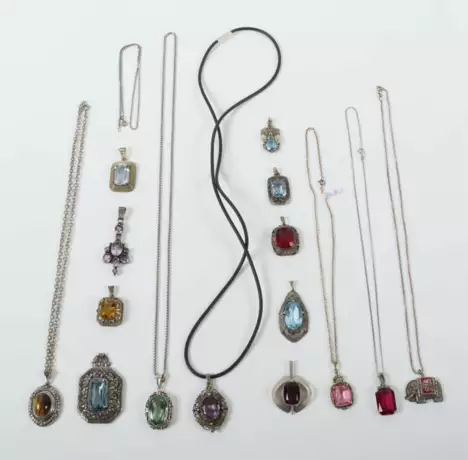 Лот 1388 | Konvolut Silberschmuck 20. Jhr., mehrere Anhänger und Ketten, meist Si…