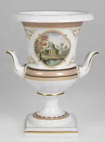 Лот 461 | Kratervase mit 2 seitl. Henkeln, Kaiser-Porzellan, Belvedere, Design: K. Nosses. H. 25 cm