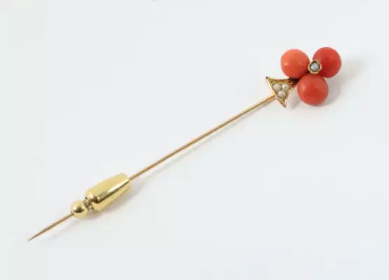Лот 1325 | Kravattennadel 20. Jhr., Kravattennadel mit kleiner Blüte aus Korallen…