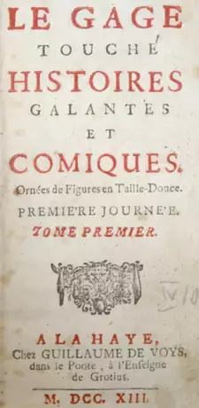 Vgl. Barbier II, 513 (EA 1696). Eustache le Noble zugeschrieben. - Tls. schwach wasserrandig. - ╔Dabei:╗ Marivaux,(P.C.)de. Le Paysan Parvenu, ou les Memoires de M***. 5 Tle. in 1 Bd. Amsterdam 1735. Kl.8°. Mit (wdh.) gest. Titelvign. Pbd. d. 19. Jh. (Beschabt u. etw. verzogen). - Tchemerzine VII, 427. Vgl. Cioranescu 42729. - Nachdruck im Jahr der Pariser EA. - Tls. gering gebräunt. - (Vanel,C.). Galanteries des rois de France. Depuis le commencement de, la monarchie jusques a present. 2 Tle. in 1 Bd. Brüssel 1694. Mit 2 gest. Front. 3 Bl., 261, 301 (recte: 299) S. Prgt. d. Zt. mit hs. Rtitel. (Etw. Gebrauchsspuren). - Barbier II, 515 c. Gay-L. II, 376. Erste Ausgabe. - Tls. (überwiegend anfangs) im unt. Bug wasserrandig. - Zus. 3 Werken in 3 Bänden.