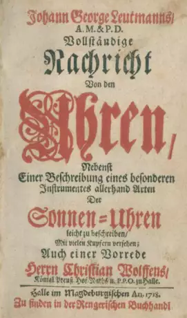 Poggendorf I, 1439. Baillie 147. Erste Ausgabe des ältesten Lehrbuchs der Uhrmacherei. Ein zweiter Teil erschien 1722. - Ohne Tabellen. 1 Tafel im Falz eingerissen (ca. 13 cm), etwas gebräunt und vereinzelt leicht fleckig.