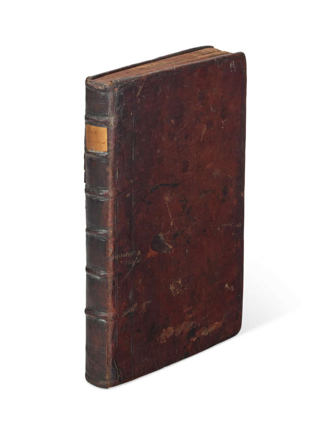 Folio (278 x 180mm). Engraved frontispiece, folding plate (light intermittent dampstain/soiling at margins; a few gatherings with minor worming at lower margin; two leaves with repaired tears, one marginal and one 70mm grazing about eight words). Contemporary blind-ruled calf (some scuffing, old spine label, without pastedowns, front endpaper torn with 50mm loss at top). Provenance: Duff (early ownership inscription to title) – John McDonald (early ownership inscriptions and pen trials/notations on endpapers) – Hugh Percy (bookplate).