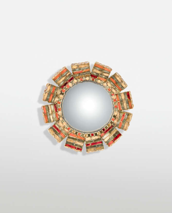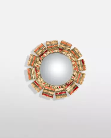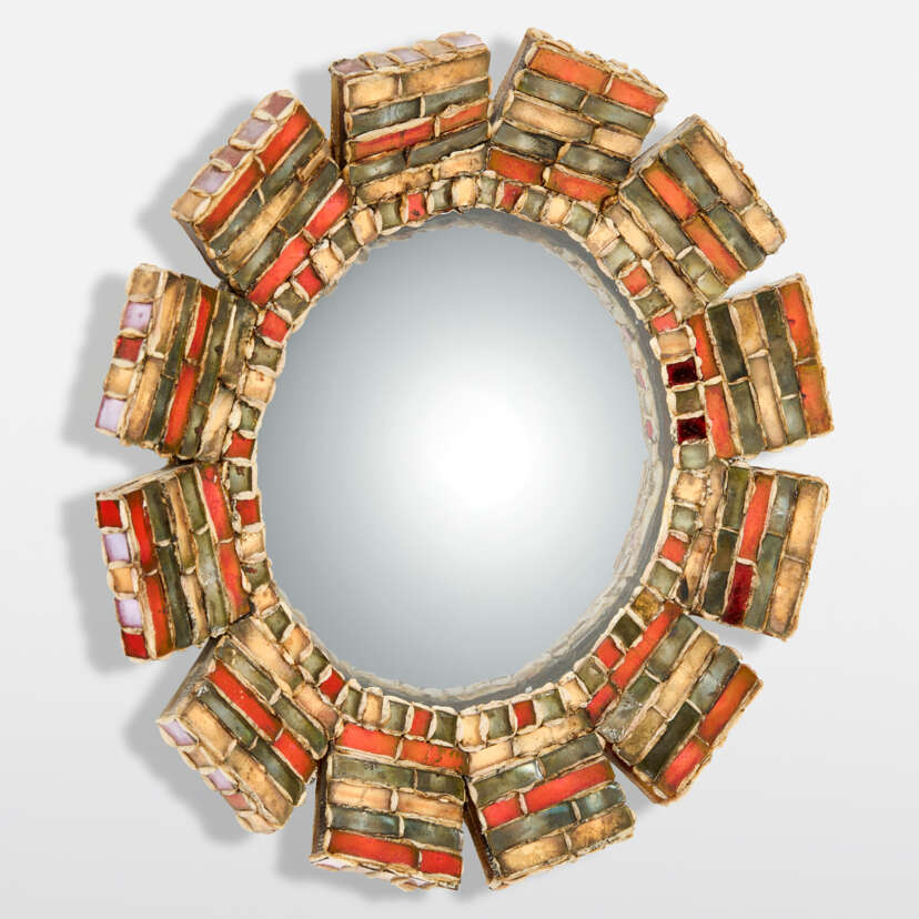 Talosel, incrustations de miroir et miroir sorcière / talosel, mirrored glass inlays and convex mirror