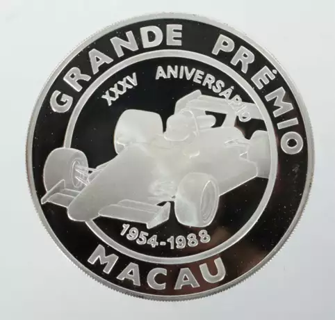 Лот 1485 | Macau-Silbermünze 1988, Silber, ca. 155,26 g, averse bez. ''GRANDE PRÉ…