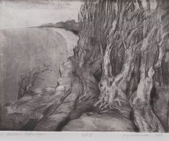 Лот 254 | Malchow, Herbert (1942-2015) "Gespensterwald", Radierung, E A II, sign. u.l., bez. und dat, 1989 u.r., 19x23 cm, im Passepartout hinter Glas und Rahmen (H. Malchow war Landschaftsmaler und Grafiker, Studium an …