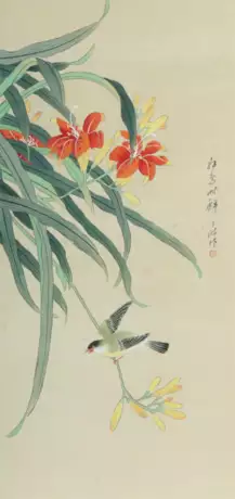 Лот 2424 | Maler des 20. Jh. China, Vogel auf Carolina-Lilien, Gouachemalerei auf…