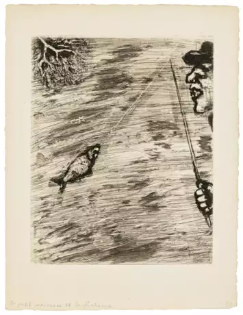 Le petit poisson et le pêcheur, from: Les Fables de la Fontaine