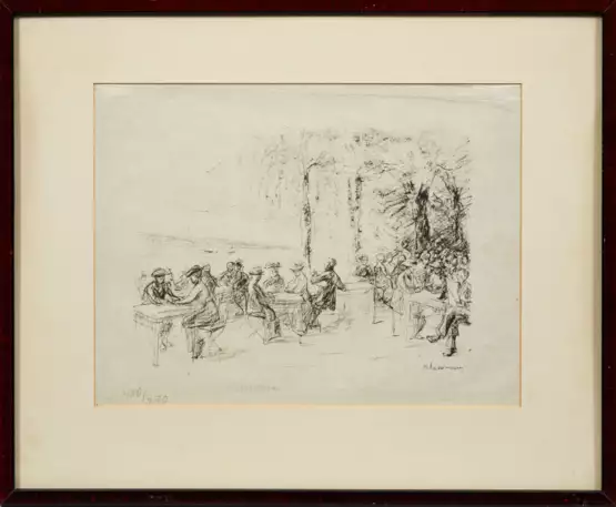 Lithographie/Japan, 1916. Sign., im Stein nochmals sign.; Nummer. von fremder Hand 410/470. Verso Stempel. Erschienen in "Die Graphischen Künste", Heft 1, Jahrgang 1917. Wvz. Schiefler 219. Blatt 27,5 cm x 36,4 cm. Rahmen.