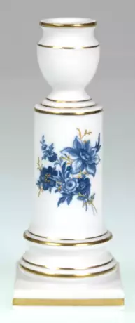Лот 458 | Meißen-Stabkerzenleuchter, Blauer Blumendekor mit Goldstaffage, Aquatinta, 1. Wahl, H. 15,5 cm