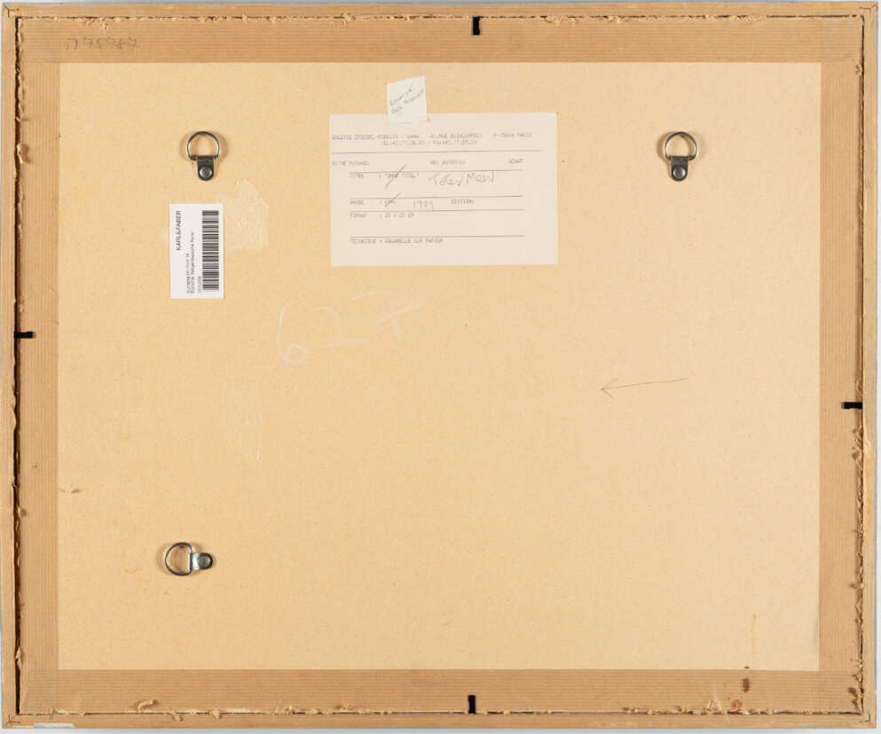 Verso punktuell auf dem Unterlagekarton fixiert. Mit kleineren Farbabsplitterungen an den Rändern sowie an vereinzelten Stellen, dort mit feinem Craquelé und Schollenbildung. Mit einer unauffälligen Feuchtigkeitsspur rechts am unteren Rand, technikbedingt leicht gewellt, sonst in gutem Zustand.