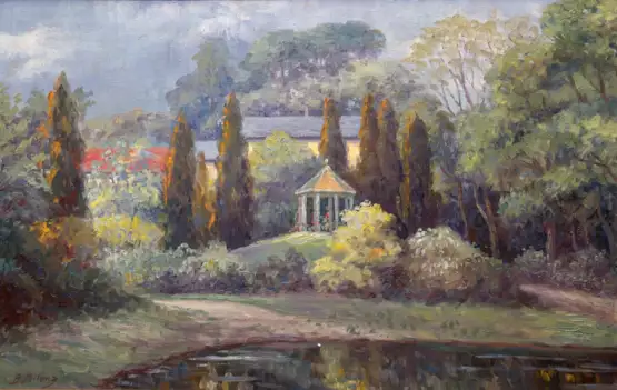 Лот 106 | Milenz, B. "Sommerlandschaft mit Gartenpavillon", Öl/ Lw., sign. u.-l., 60x91 cm, Rahmen