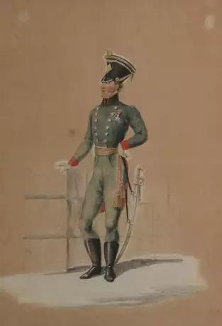 8 Aquarelle. - Zeigen Soldaten zu Fuß und 1 mit Pferd 19. Jhdt. Ca. 21 x 17 cm.
