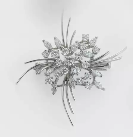 Brooch set with diamonds approx. 0,90 ct. (G-H/vvs-vs), in 18 k white gold.