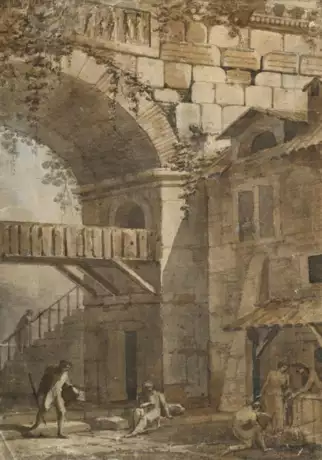 18. Jahrhundert, wohl nach. Tinte /Aquarell, verso undeutlich sign. (Morello?) dat. 1741. 34,5 x 24 cm, knickspurig, Randdefekte.