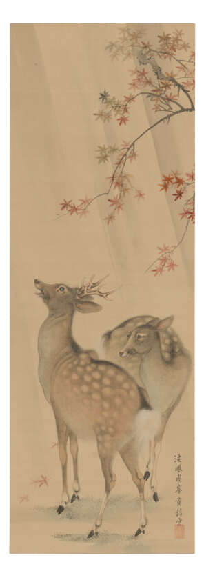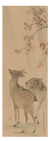 Pair of deer beneath a maple tree