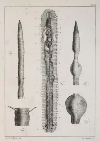 Nissen, ZBI 2891. Erste Ausgabe, (aus: Annales Academiae Gandavensis, Jg. 1825/26). - Umfassende Monographie über den Regenwurm des belgischen Botanikers u. Direktor des "Jardin botanique de l'Université de Liège". - Etwas gebräunt, Tafeln stockfleckig, Ebd. etw. berieben.