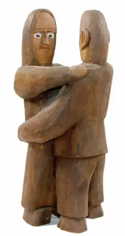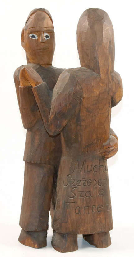 (polnisch, 1908 - 1983). Tancerze (Tänzer). Holzskulptur, polychrom gefasst. 43 x 19 x 14,5 cm. Verso sign., ortsbez. u. bet. An der Unters. alte Klebeetikette.