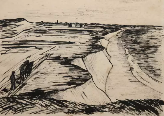 Лот 191 | Müller-Leutert, Helmut (1892-1973) "Hohes Ufer bei Wustrow", Tinte/ Papier, monogr. u.r. und dat. ´36, Blatt an den Rändern besch. und stockfleckig, 36,5x50 cm, ungerahmt