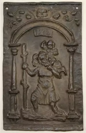Darstellung des hl. Christophorus, dat. 1572. Eisenguss, vermutlich Nachguss a.d. 19.Jhdt.