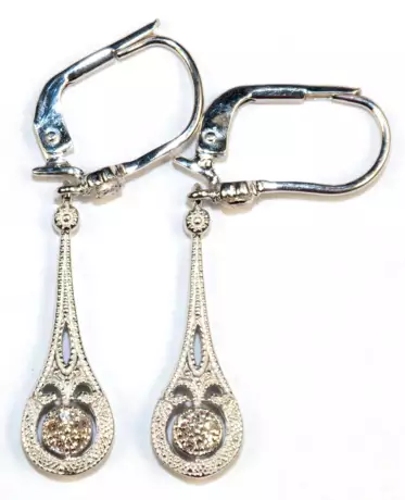 Лот 821 | Ohrringe im Art-Deco-Stil, 925er Silber, rhodiniert, 12 Brillanten, Länge mit Brisur ca. 3,4 cm