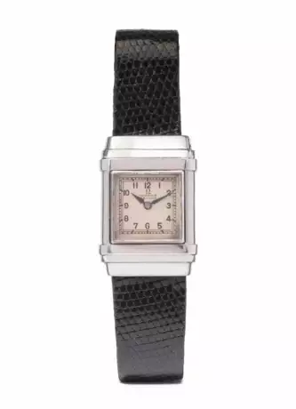 Staybrite Edelstahl-Gehäuse, Nr. 8868387, 34x23 mm. Handaufzug Kal. 19.4T.2, Werk Nr. 8452545. Versilbertes Zifferblatt, markiert "Fab. Suisse" mit schwarzen arabischen Ziffern, Eisenbahnminuten und gebläuten Zeigern. Neuwertiges Lederband mit originaler Faltschliesse. Funktionstüchtig.