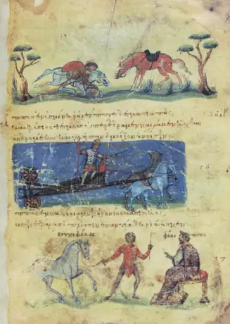 Das Traktat der Jagd und Fischerei basiert auf den Ausführungen des griechisch-römischen Dichters Oppian von Apamea und wurde für Kaiser Caracalla verfasst. Die sehr anschaulichen Illustrationen im byzantinischen Stil des 11. Jahrhunderts zeigen die Jagd mit Hunden, zu Pferde, den Fischfang und die Vogeljagd.